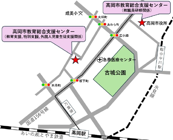 教育総合支援センター周辺マップ【教職員研修】(高岡市役所)